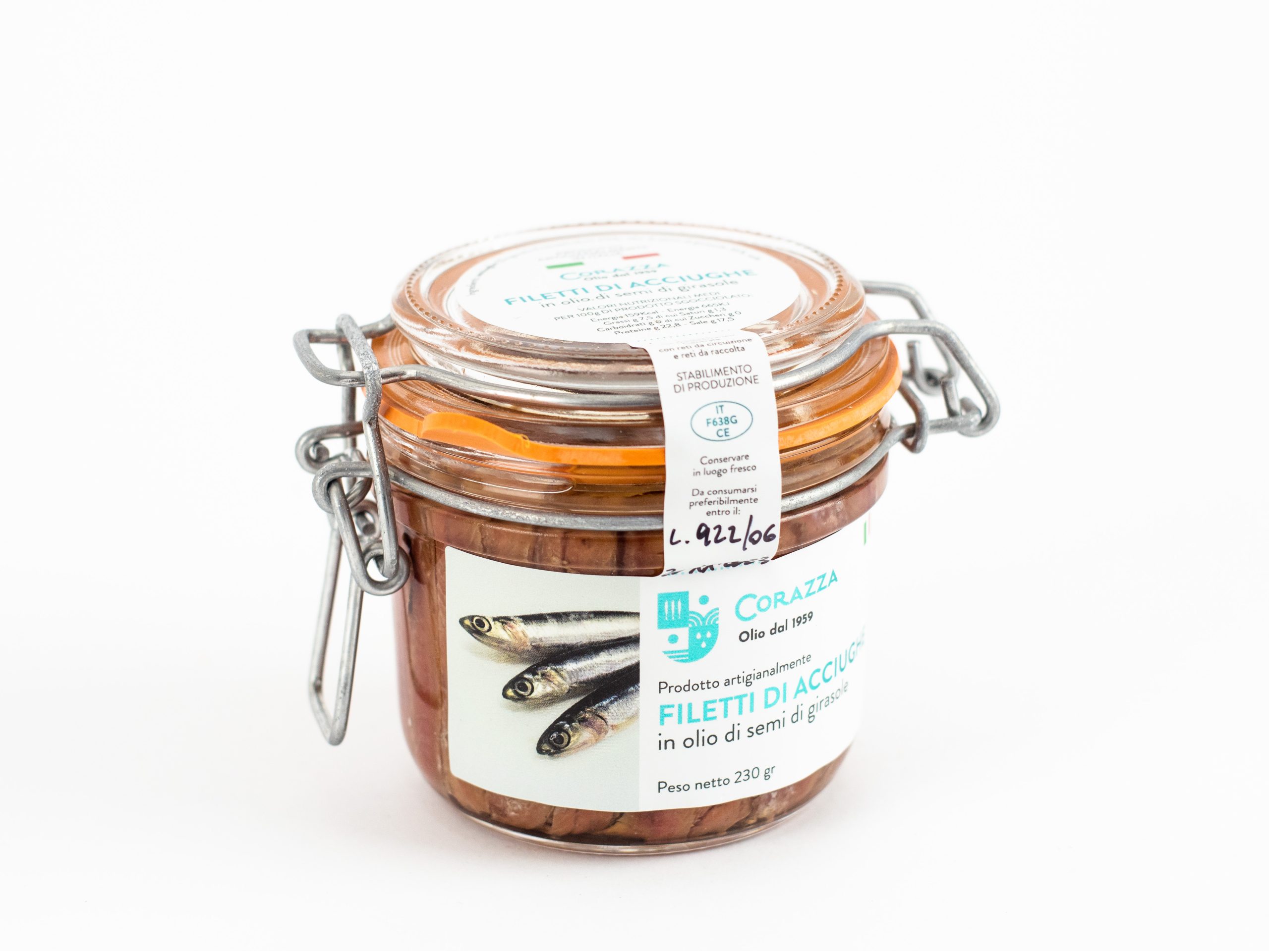 Ingredienti: filetti di acciughe, Olio Corazza.