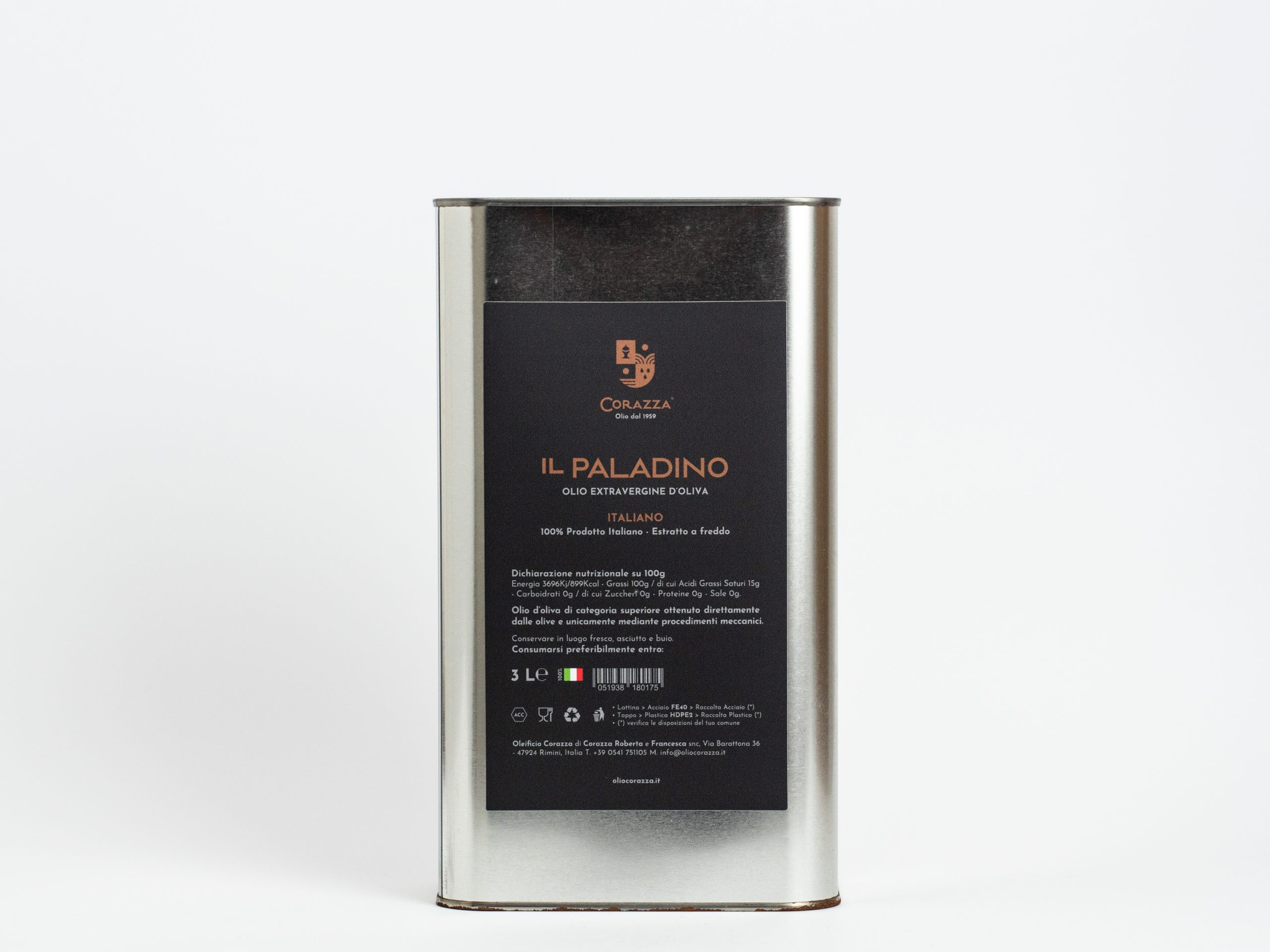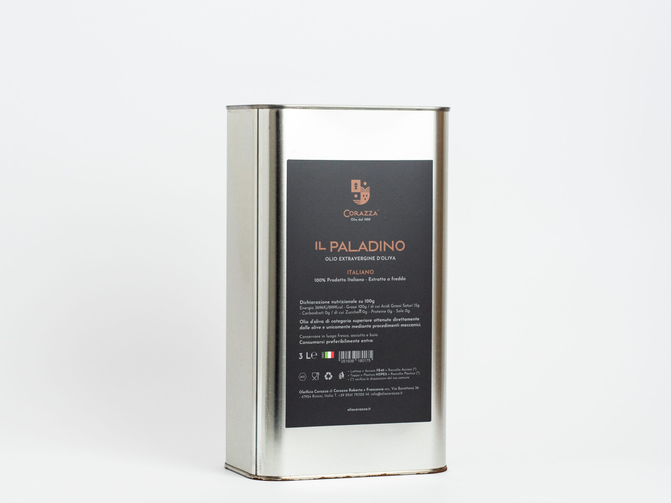 Colore verde intenso ed estremamente limpido, grazie all’immediato filtraggio, il Paladino è un fruttato medio intenso che rilascia una gradevole carica amara e piccante con note decise di erba, pomodoro verde, carciofi e spezie.Perfetto condimento per piatti saporiti, Funghi porcini, lenticchie, fagioli, carni rosse e formaggi di media stagionatura.Cultivar : Frantoio – Leccino – Moraiolo in misura variabile