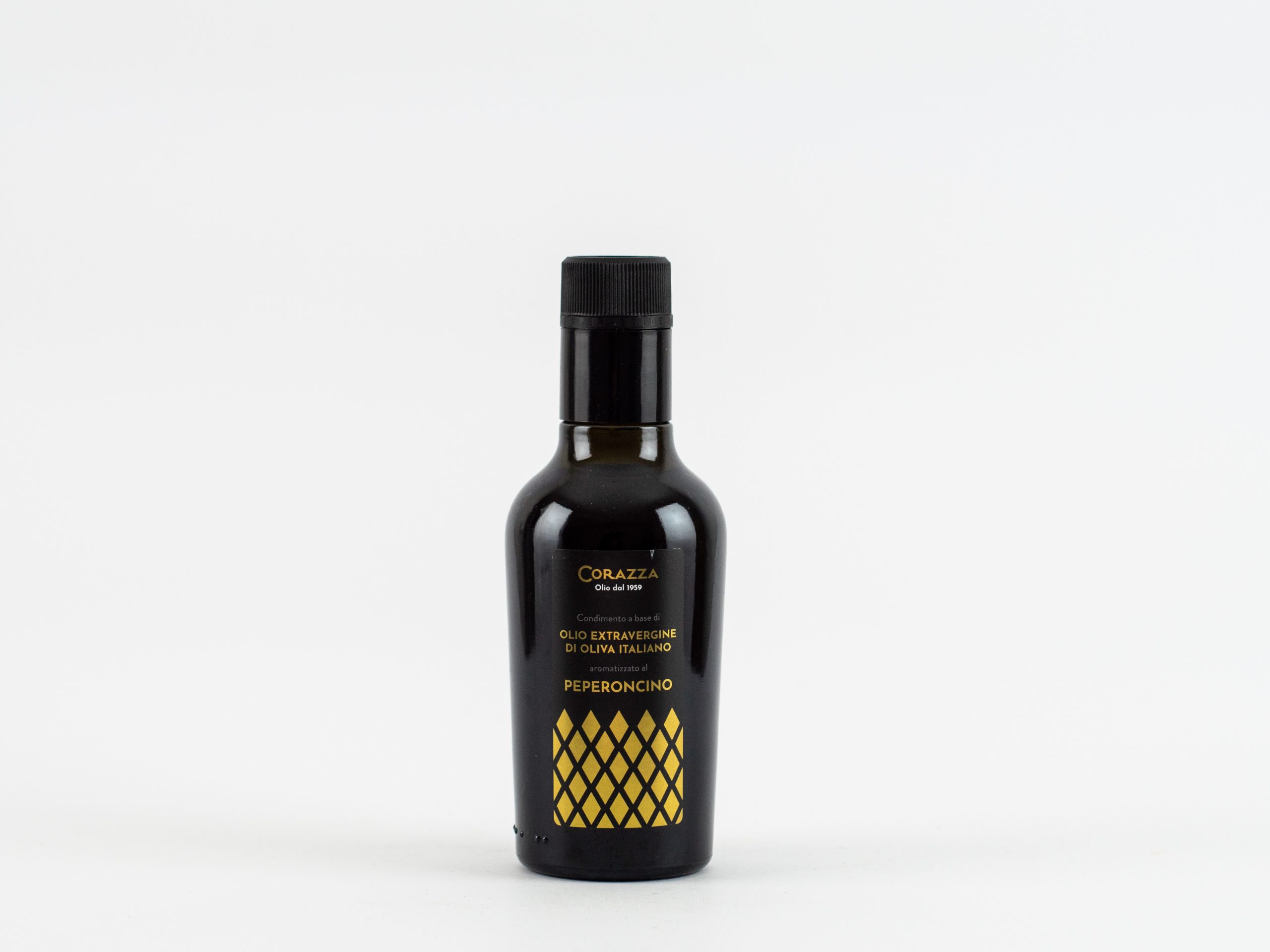 Il pregiato olio extra vergine di oliva Italiano estratto a freddo, unito al sapore forte e persistente del peperoncino piccante, crea un’esplosione di sapori che stuzzica il palato.